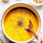 - Blend (optional): Using a hand blender or a traditional blender, puree the soup to your desired consistency. If using a traditional blender, blend in batches and allow steam to escape safely (see notes).
