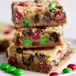 Deliciously rich and colorful M&M Cookie Bars featuring a buttery base loaded with chocolate chips and M&M’s. Perfectly chewy with a touch of crispness on top, these bars are an easy and festive treat that can be customized for any occasion.