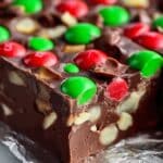 - Add M&Ms Topping: Sprinkle the cup of M&Ms evenly over the top of the mixture, then press down lightly with the back of a spoon or your hands to ensure they stick into the surface.