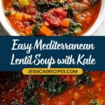 A hearty and flavorful Mediterranean Lentil Soup featuring fire-roasted tomatoes, aromatic spices, and nutritious kale. This comforting soup is easy to prepare on the stovetop and can be blended for a creamy texture or enjoyed chunky. Perfect for a healthy, satisfying meal that showcases classic Mediterranean flavors.