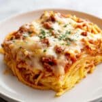 Million Dollar Spaghetti is a hearty and delicious baked pasta casserole featuring Italian sausage, a rich three-cheese layer, and a flavorful marinara sauce. This comforting dish combines tender spaghetti tossed with savory sausage and marinara, layered with a creamy blend of cream cheese, ricotta, and parmesan, then topped with melted mozzarella cheese. Perfect for family dinners or potlucks, it offers a satisfying and cheesy Italian-American meal.