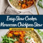 A hearty and flavorful Moroccan Chickpea Stew made effortlessly in the slow cooker. This nourishing stew combines chickpeas, red lentils, butternut squash, and aromatic spices like cumin, turmeric, and smoked paprika for a warming, healthy meal. Perfect served over quinoa with fresh arugula and creamy coconut yogurt.