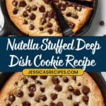 Indulge in this decadent Nutella Stuffed Deep Dish Cookie, featuring a buttery brown sugar cookie dough layered with rich Nutella and melty chocolate chips baked to gooey perfection in a cast iron skillet. Perfect for sharing warm or cooled for neat slices, this dessert combines soft, chewy textures with an irresistible chocolate-hazelnut center.