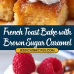 The morning of, remove the cover and place the pan in a cold oven. Then set your oven to 350°F and bake for 30–35 minutes. You’ll know it’s ready when the bread turns golden around the edges and you see the syrup bubbling up nicely. If you want the crème brûlée style “caramelized” top throughout, try baking it for 20 minutes, then using a large spatula to carefully flip each piece and bake another 10–15 minutes—this flips the syrupy gold to the top for that gorgeous, crackly finish.