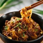 This Potsticker Noodle Bowl is a flavorful and quick-to-make dish combining tender ground pork, wide Lo Mein noodles, and a vibrant sauce inspired by Asian flavors. Featuring a mix of savory soy, sweet mirin, and a hint of spice from sriracha, the bowl is tossed with crunchy coleslaw mix for texture and garnished with fresh green onions. Perfect for a satisfying weeknight dinner that captures the essence of potstickers in noodle form.