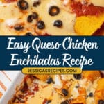 Delicious and comforting Queso Chicken Enchiladas made with shredded rotisserie chicken, rich queso cheese, and savory enchilada sauce baked to perfection. Perfect as a make-ahead meal for an easy, crowd-pleasing dinner.
