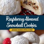 Delight in these Raspberry Almond Snowball Cookies, a delightful treat featuring buttery almond-infused dough balls stuffed with sweet raspberry jam and generously coated in powdered sugar. Perfectly soft with a tender crumb, these charming cookies blend nutty and fruity flavors for an irresistible bite.