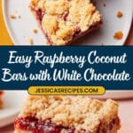 Delight in these luscious Raspberry Bars with Coconut, featuring a buttery crust studded with shredded coconut and walnuts, a sweet raspberry preserves filling, and a topping of white baking chips and more coconut. Perfectly golden and tender, these bars offer a scrumptious blend of textures and flavors that satisfy any sweet tooth.