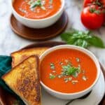 - Serve: Serve the soup warm, garnished with the remaining chopped fresh basil. Optionally add grilled cheese sandwiches or croutons on the side.