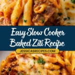 Yes! While penne and ziti are classic choices for baked ziti, other sturdy pasta shapes like rigatoni or mostaccioli work well too because they hold sauce nicely and don’t turn mushy quickly in the slow cooker.