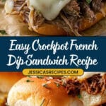 Tender and flavorful Crockpot French Dip Sandwiches made with slow-cooked beef chuck roast, seasoned with garlic and onion powder, and served on toasted hoagie rolls with melted provolone cheese and a rich au jus for dipping.