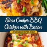 - Add toppings and cheese: After slow cooking, spoon the remaining 1 cup of BBQ sauce over the chicken breasts. Place a slice of Colby Jack cheese on each piece, then sprinkle with crumbled bacon, diced tomato, and diced green onions.