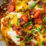 This Crock Pot Monterey Chicken recipe features tender, flavorful chicken breasts slow-cooked to perfection in a savory blend of BBQ sauce and tomatoes with green chiles. Topped with melted Colby Jack cheese, crispy bacon, fresh diced tomatoes, and green onions, this comforting dish is perfect for an easy dinner with bold southwestern flavors.