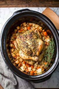 - Chicken broth: The slow cooker’s flavorful bath that keeps the turkey tender.