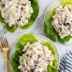 - Start with 3/4 cup mayonnaise and add more depending on how much chicken you have for the perfect consistency.
