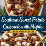 This Southern Maple Sweet Potato Casserole is a delightful blend of roasted sweet potatoes, warm spices, and a luscious maple-pecan topping. Perfectly sweetened with brown sugar and maple syrup, and finished with gooey marshmallows, this comforting casserole offers a perfect balance of textures and flavors for holiday gatherings or cozy family dinners.