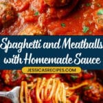 Classic Italian Spaghetti and Meatballs recipe featuring tender homemade meatballs simmered in a rich and flavorful tomato sauce, served over perfectly cooked spaghetti. This comforting dish blends savory ground beef and pork with aromatic herbs, garlic, and parmesan cheese for a traditional family favorite.