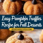 I’m a sucker for the little pumpkin look—those tiny indents and chocolate chip “stems” give these truffles an adorable festive touch. Sometimes I sprinkle a little extra cinnamon sugar on top right before serving for a sparkly finish.