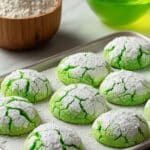 Celebrate St. Patrick’s Day with these easy, festive green cookies made from a white cake mix. Soft and chewy with a crackled top, these vibrant treats are rolled in sugar for a sweet, sparkling finish. Perfect for parties or a festive snack, they’re simple to make and sure to impress with their bright Kelly green color.