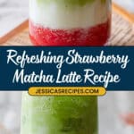 A refreshing Strawberry Matcha Latte that layers sweet strawberry purée, icy milk, and frothy matcha green tea for a vibrant, visually stunning, and delicious drink perfect for spring and summer.
