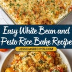 This White Bean and Pesto Bake is a comforting, hearty one-dish meal featuring cannellini beans, brown rice, and vibrant pesto combined with juicy cherry tomatoes. Simmered in vegetable broth and baked to perfection, it is topped with a crispy golden layer of panko crumbs and Parmesan cheese, making it a flavorful, satisfying vegetarian entrée ideal for any occasion.
