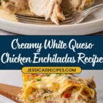 These White Queso Enchiladas are a creamy and flavorful Mexican-inspired dish featuring tender shredded chicken rolled in soft flour tortillas, smothered in a rich white queso sauce made with queso blanco, heavy cream, and salsa verde. Baked to perfection with melty pepper jack cheese on top, these enchiladas offer a hearty and satisfying meal with a touch of fresh lime and jalapeno heat balanced by smooth creaminess.